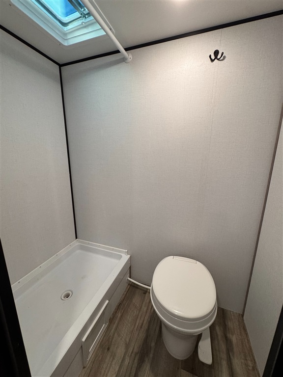 is a lightweight, family friendly travel trailer designed for comfortable camping with sleeping for up to 5 people. It features a camper queen bed, twin bunk beds and a convertible dinette.