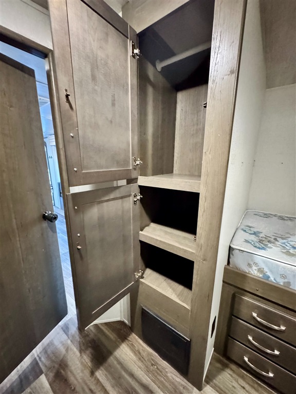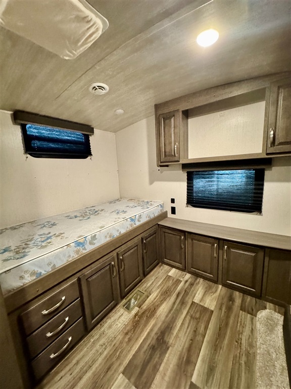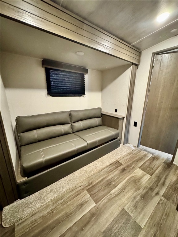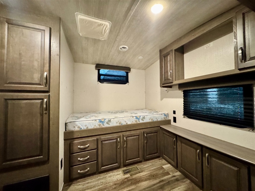 Bunkhouse: A separate room with one bed a futon that converts to a bed, and its own TV prep space and storage.