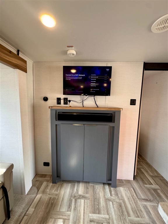 Privacy curtain or door between sleeping and living areas for comfort