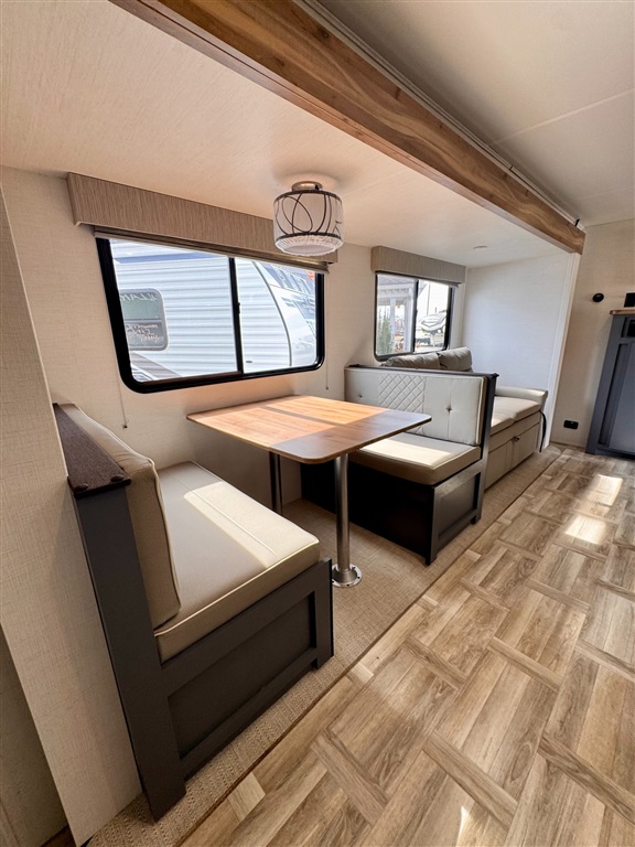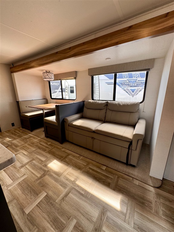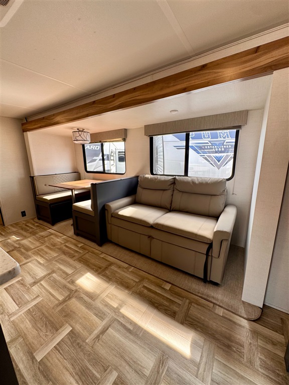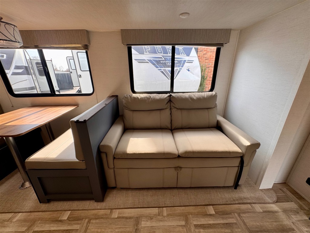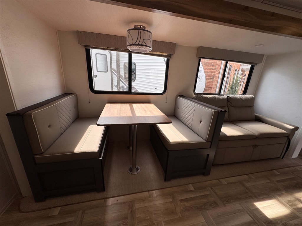 Booth dinette and sofa convert to additional sleeping space