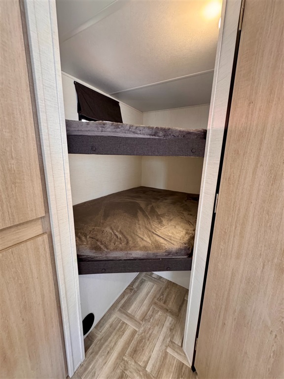 Rear double-size bunk beds suitable for kids or guests