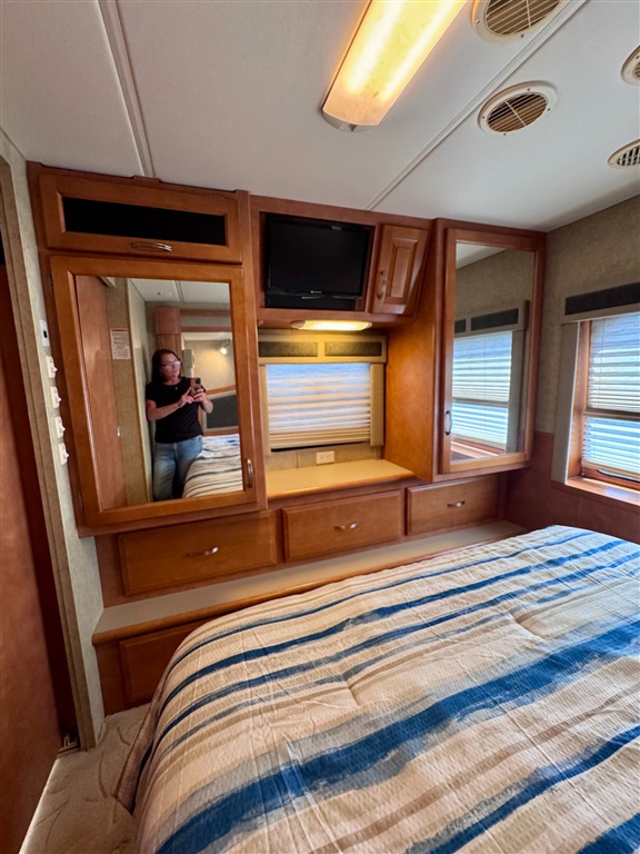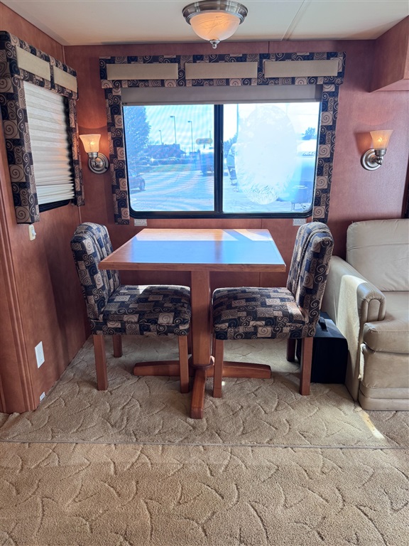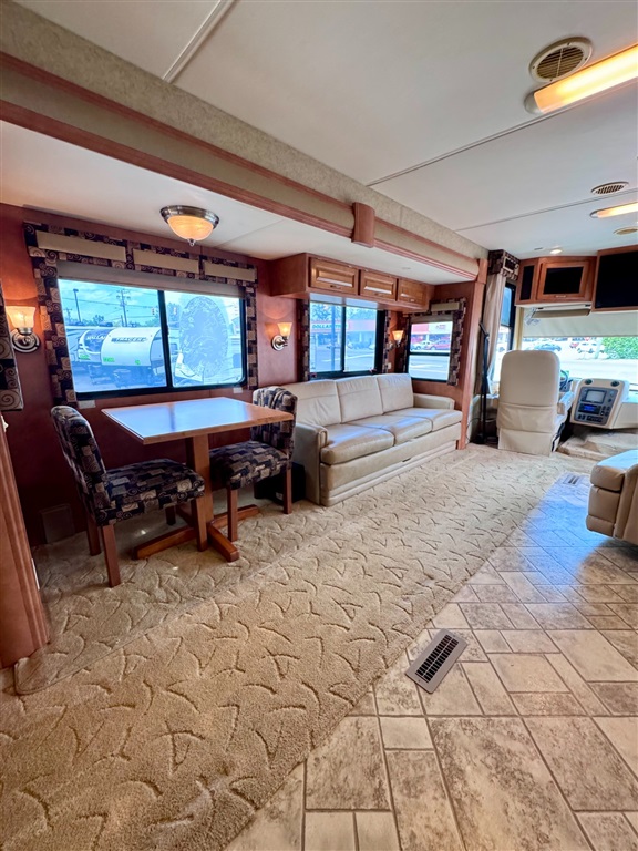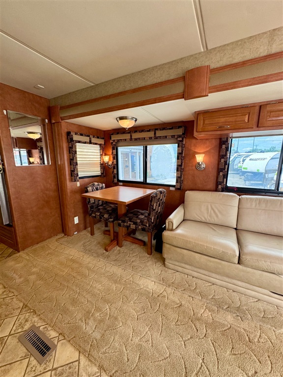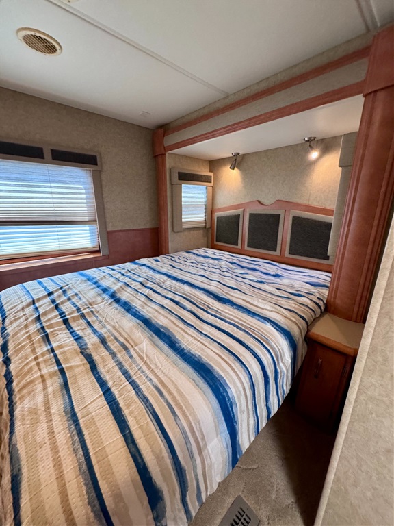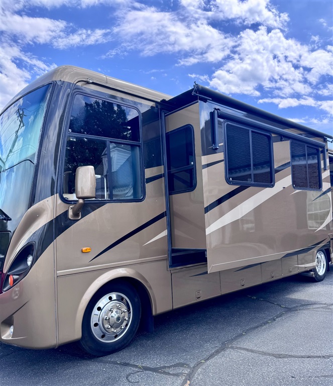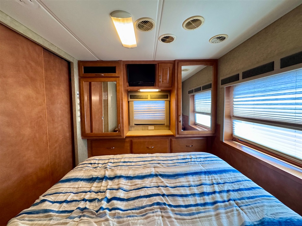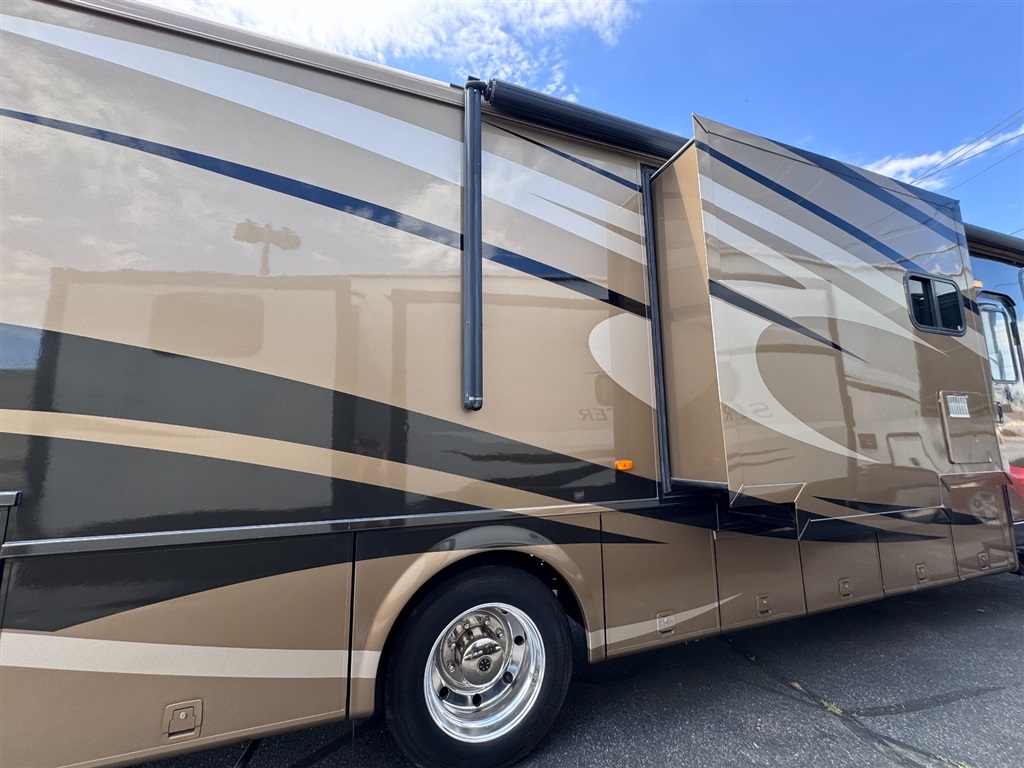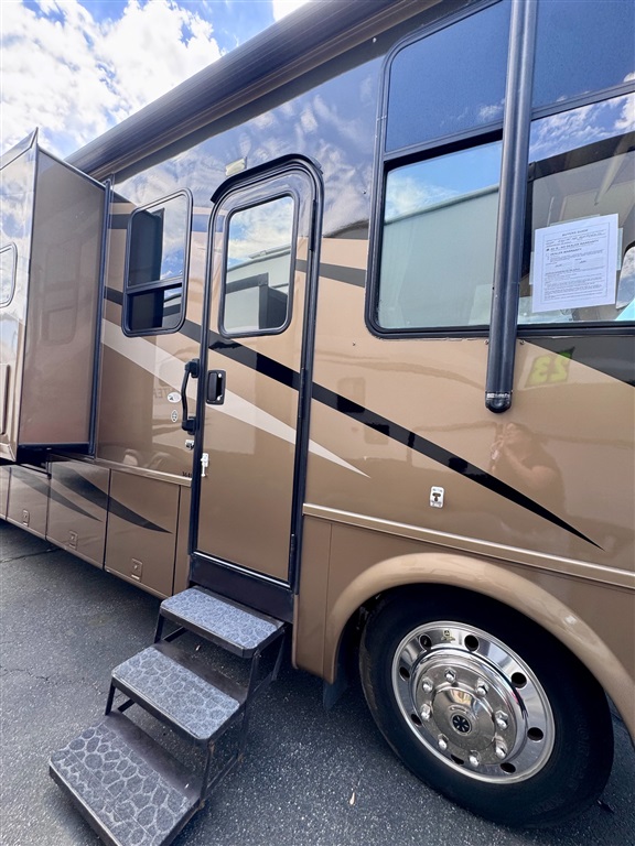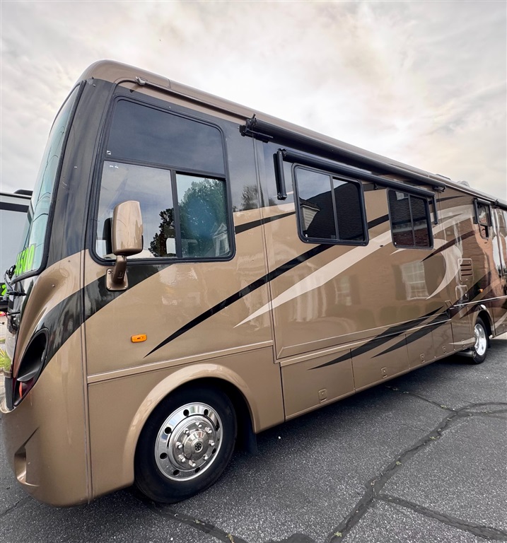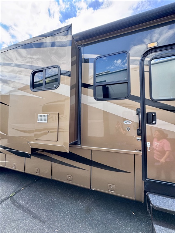 2009 Newmar Canyon Star 3641 is a 36-foot gasoline-powered Class A motorhome featuring three slide-outs and a side dinette floor plan. It is built on a heavy-duty Ford chassis designed for long-term comfort and durability.